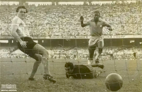 Pelé, Fotografia de um dos gols marcados pelo Brasil na vitória sobre a Argentina em jogo válido pela Copa Roca de 1957. - Arquivo Nacional/ Correio da Manhã |