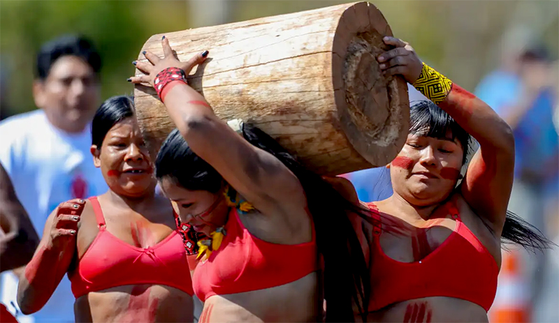 Indígenas fazem corrida de toras em defesa do cerrado