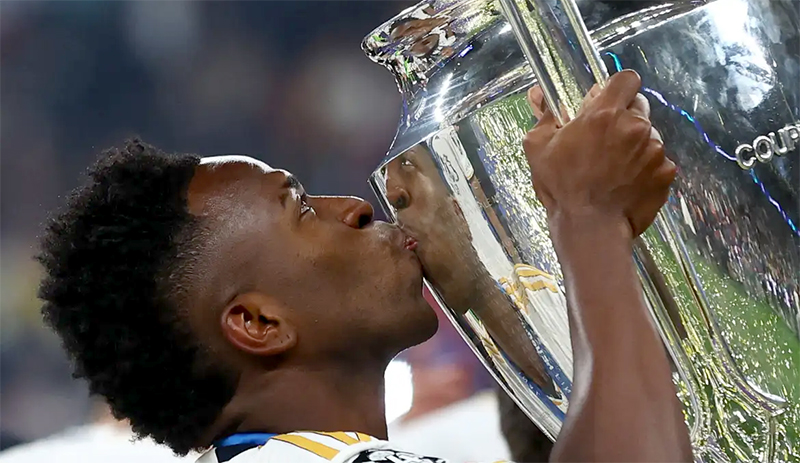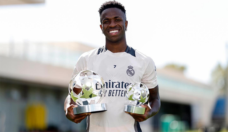 Vini Júnior recebe troféu de melhor jogador da Liga dos Campeões