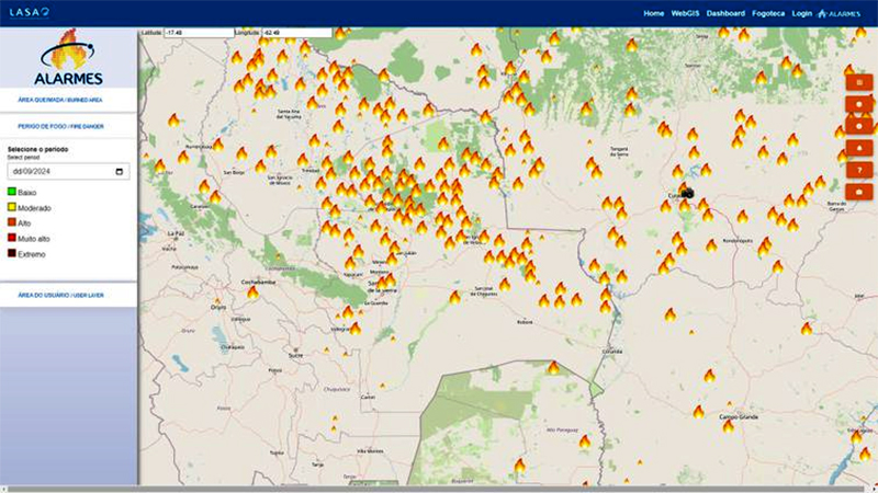 Renata Libonati: O sistema Alarmes foi lançado em 2020. Até aquela época, o monitoramento de área queimada por satélite era feito com atraso que podia chegar a três meses para a gente ter estimativas de quanto e de onde queimou. O sistema Alarmes veio para trazer uma informação que era muito requerida pelos órgãos de combate e prevenção, que era informação da área queimada de alguma forma rápida, em tempo quase real, para fazer as ações de planejamento do combate.