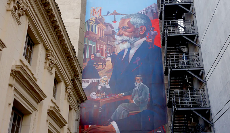 Um recorte da vida do escritor Machado de Assis passa a fazer parte da fachada do edifício da Academia Brasileira de Letras (ABL), no centro da cidade do Rio de Janeiro. Estão representadas em um mural de 150 metros a casa onde o escritor morou, no Morro do Livramento, a Rua do Ouvidor, que lhe era tão querida, no centro da cidade, sua esposa, Carolina Augusta, a paixão pela música clássica, pela literatura e as reflexões sobre vida e morte.
