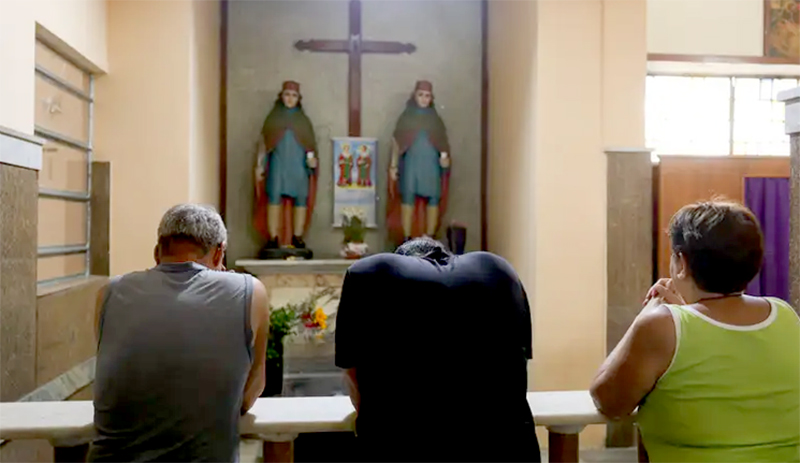 Fiéis na Paróquia de Cosme e Damião, no Andaraí, na zona norte da
