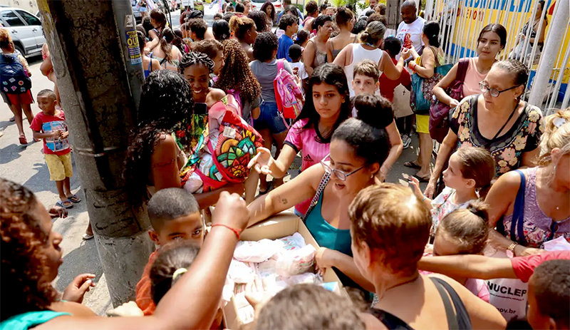 No Rio, há distribuição de alimentos,