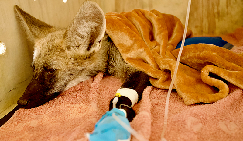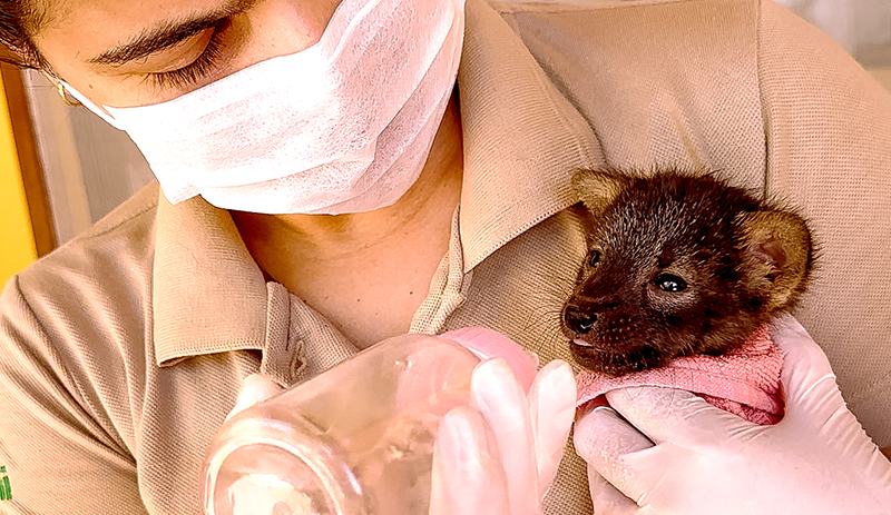 Também está aos cuidados do Parque, um filhote de cachorro do mato, que apesar de não ter sido vítima de incêndios florestais, o animal também apresentava sinais de desidratação. O filhote foi encontrado por parceiros locais e resgatado pela UR no município de São Desidério.
