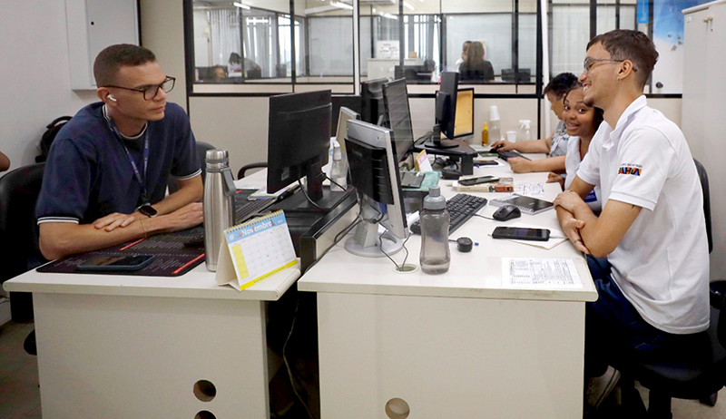 “Eu trabalhava em outra área e vi o Partiu Estágio como uma oportunidade de dar o primeiro passo no jornalismo, que é a área que eu estudo. Cheguei na primeira convocação deste ano e tem sido uma realização muito grande”, compartilhou Maju Moreira, estudante do Centro Universitário UniFTC, sobre sua primeira experiência de trabalho em sua área de formação na Secretaria de Comunicação (Secom), através do Partiu Estágio.