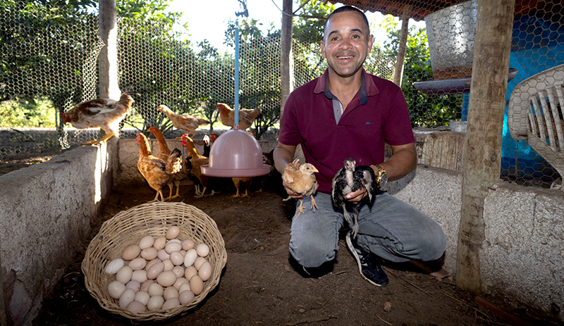Outro exemplo de sucesso é Edilson Pereira, agricultor familiar de Queimadas, em Governador Mangabeira. Com o apoio da CAR, Edilson conseguiu expandir sua criação para mais de 250 galinhas e produz mais de 50 dúzias de ovos por semana. “Agora, com um espaço adequado e telado, posso manter a produção durante todo o ano, mesmo no período das plantações. Esse projeto mudou nossa vida, e hoje vendo na feira, na Assembleia Legislativa em Salvador, e até faço entregas por encomenda”, comemora Edilson.