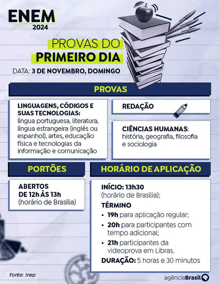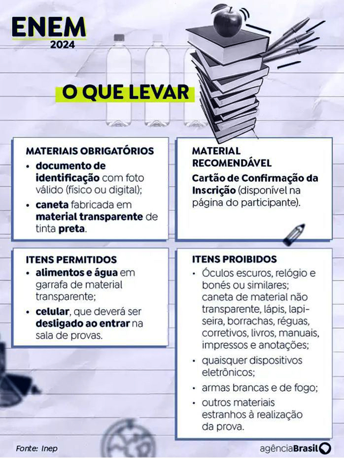 Nesta reta final, a Agência Brasil preparou uma lista de orientações que podem ajudar os candidatos a evitar transtornos ou até mesmo a própria eliminação do exame.