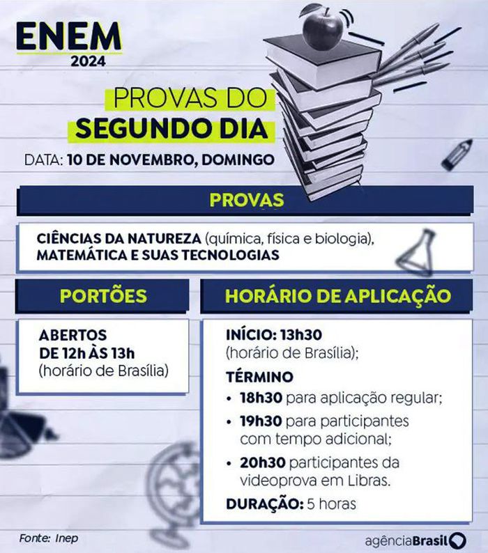 Conteúdos cobrados no segundo dia de provas. Arte/Agência Brasil