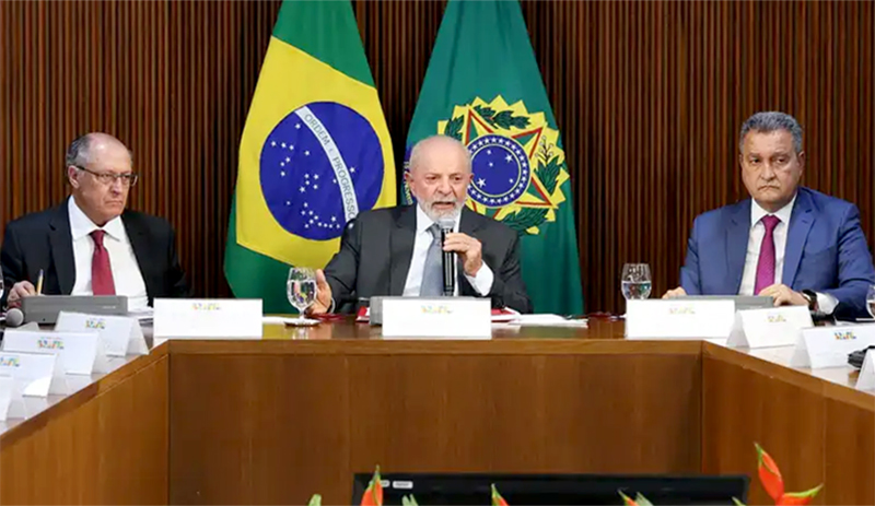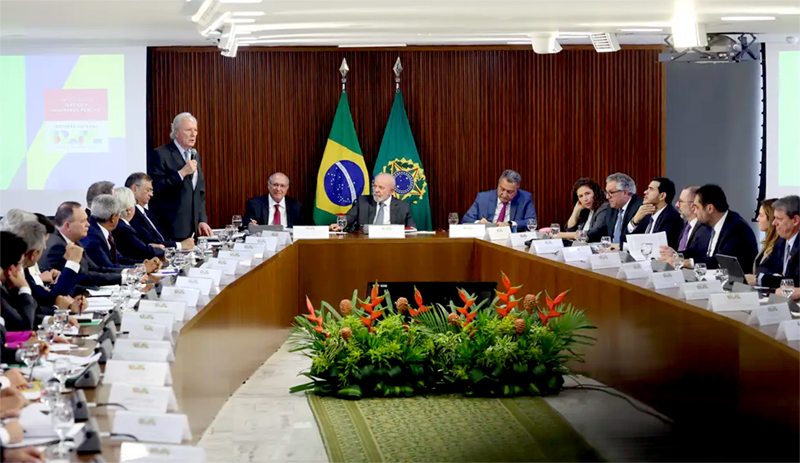Presidente Lula durante reunião com governadores e ministros.