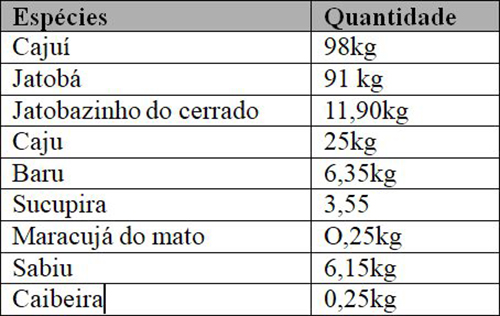 Obs.: resultado da coleta de semente em 30 dias pela ACAM,