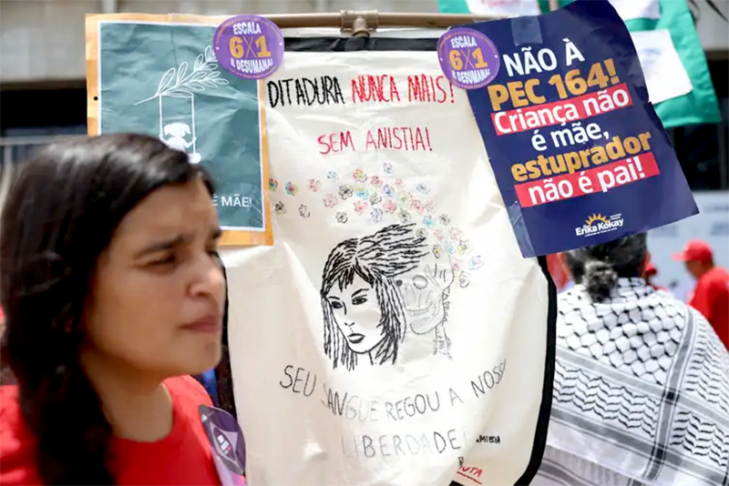 Eles já até sugeriram prender mulheres estupradas que se recusam a ter filhos de seus algozes. O número cada vez maior de feminicídios é consequência dessa mentalidade tosca e bárbara”, acrescentou Camila Tenório.