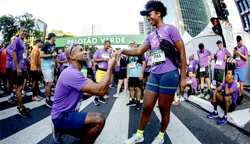 “Eu a conheci através da corrida e acho que essa foi uma ocasião especial para pedi-la em casamento”, contou ele à reportagem da Agência Brasil. “E a resposta foi sim, Graças a Deus. Ainda bem que ela aceitou!”.