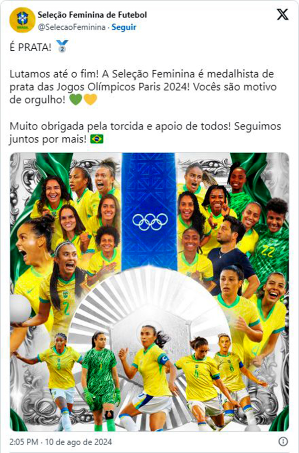 Internamente a seleção acreditava no pódio olímpico, mas o favoritismo estava mais direcionado às equipes europeias e aos Estados Unidos. O ponto de virada do roteiro épico do Brasil na França começou justamente diante das donas da casa, nas quartas de final, na vitória sobre as francesas por 1 a 0. Na semifinal o Brasil reencontrou uma Espanha para a qual já havia perdido na fase de grupos. E, novamente, as atletas brasileiras foram surpreendentes, superando as campeãs do mundo por 4 a 2. O ouro olímpico inédito ficou muito próximo da realidade na final contra os Estados Unidos. Por isso, o magro revés de 1 a 0 para as norte-americanas sugeriu, a princípio, uma decepção, mas logo a medalha de prata foi muito bem recebida por voltar a trazer o prestígio ao futebol de mulheres brasileiro.