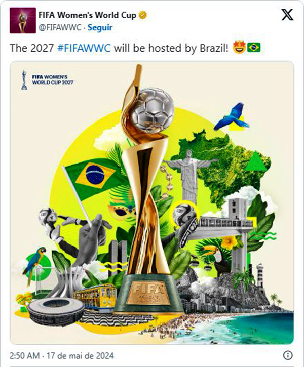 Antes da consagração olímpica, em maio de 2024, o Brasil foi escolhido durante o Congresso da Fifa, na Tailândia, para sediar a Copa do Mundo Feminina de 2027. A candidatura brasileira venceu a proposta europeia formada por Holanda, Alemanha e Bélgica. Esta será a primeira vez que o Mundial feminino será realizado na América do Sul e no país. O Brasil, por ser anfitrião do evento, já está classificado. O torneio será o segundo com 32 seleções participantes, repetindo o formato da Copa de 2023, que teve a Espanha como campeã. A proposta da CBF, alinhada à