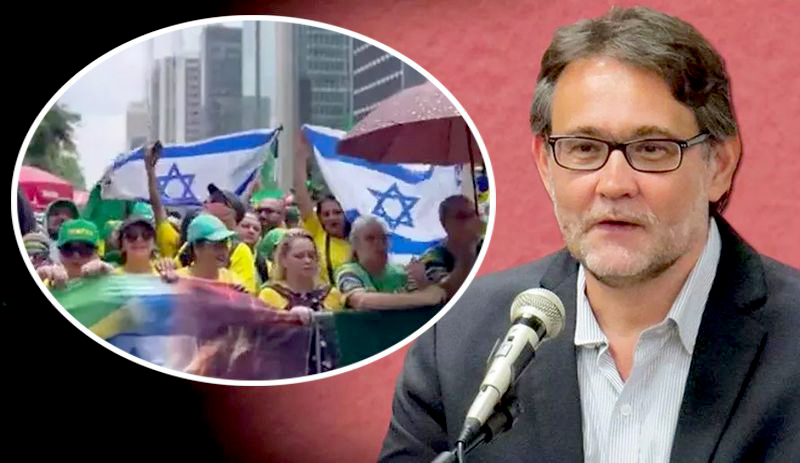 João Cezar de Castro Rocha e bandeiras de Israel (Foto: Divulgação)