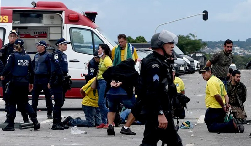 As penas para esses réus variam de três anos a 17 anos e seis meses de prisão. Naquela data, 2.172 presas foram presas em flagrante por participarem de alguma forma dos atentados aos prédios dos Três Poderes.