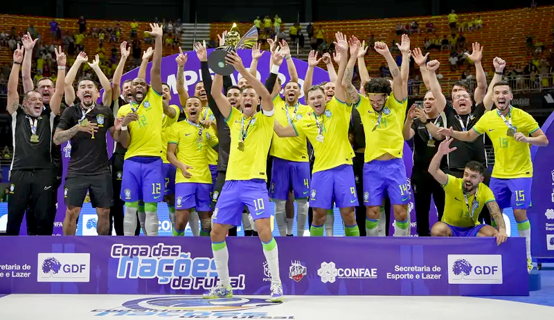 A seleção brasileira conquistou, no último domingo (21) no Ginásio Nilson Nelson, em Brasília, a Copa das Nações de Futsal. O título foi garantido após uma vitória pelo placar de 2 a 1 sobre a Polônia.