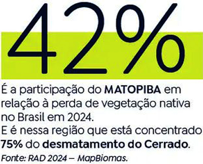 Atualmente, 51% do Cerrado mantém a vegetação nativa. Quase metade dessa vegetação remanescente está concentrada no Matopiba, região que mais se desmata no Brasil. Especialistas alertam que essa tendência coloca em risco a segurança hídrica do Brasil.