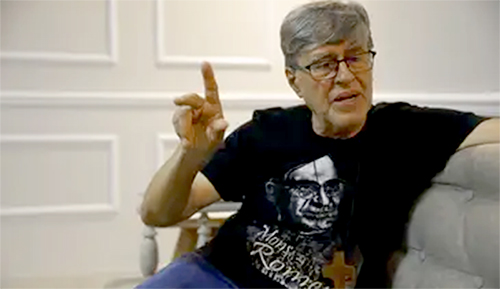 Imperatriz (MA) – Dom Valentim e a inspiração que carrega na blusa: padre Óscar A. Romero, defensor de direitos humanos assassinado em 1980. - Fernando Frazão/Agência Brasil |