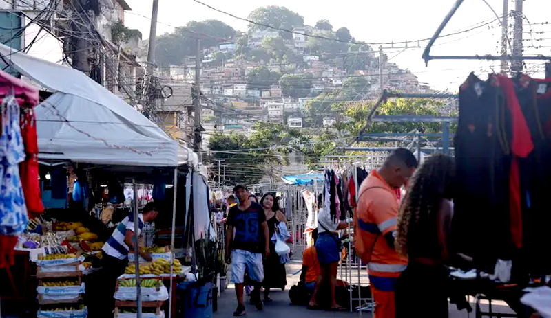 Feira na rua José Rucas, no Complexo da Penha, no Rio de Janeiro. Foto: Tânia Rêgo/Agência Brasil