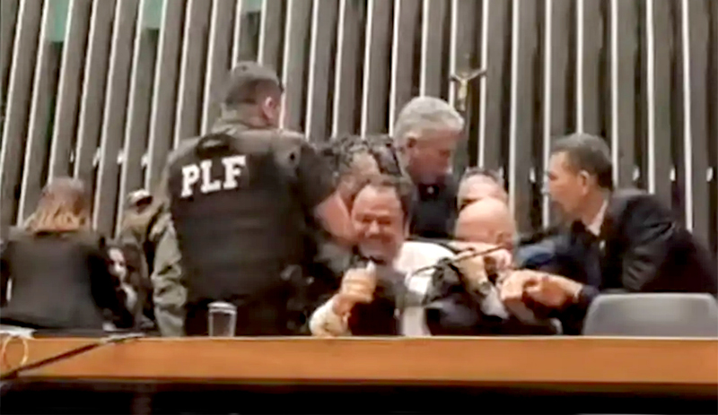 Imagens registradas por deputados mostram o momento em que o Glauber Braga é retirado à força, sob protestos de parlamentares aliados.