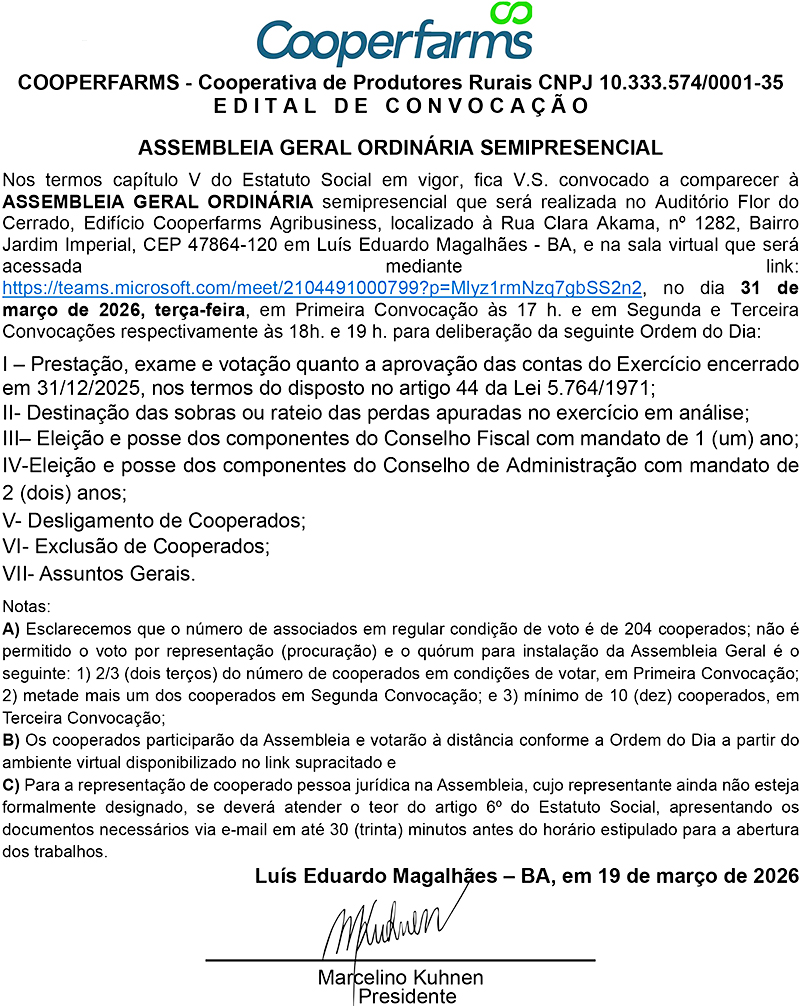 COOPERFARMS - EDITAL DE CONVOCAÇAO - ASSEMBLEIA GERAL ORDINÁRIA SEMIPRESENCIAL
