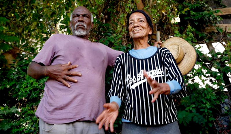 Tio Dadá e Tia Vera, cuidadores da horta comunitária do programa Hortas Cariocas, no Salgueiro. Foto: Tânia Rêgo/Agência Brasil |
