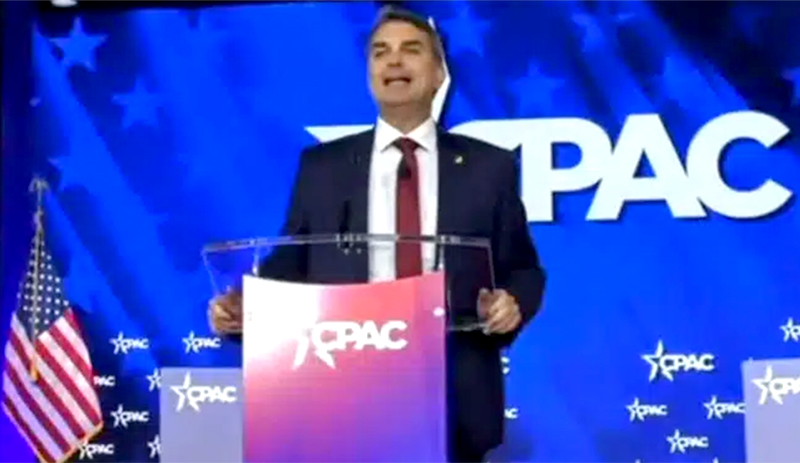 Flávio Bolsonaro falou no principal encontro da extrema direita dos Estados Unidos. (Foto: Reprodução/Youtube)