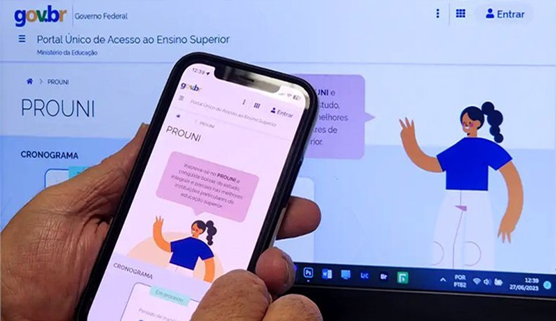 Portal Único de Acesso ao Ensino Superior na parte do Prouni. Para acessar, é preciso digitar o login e senha da conta Gov.br.