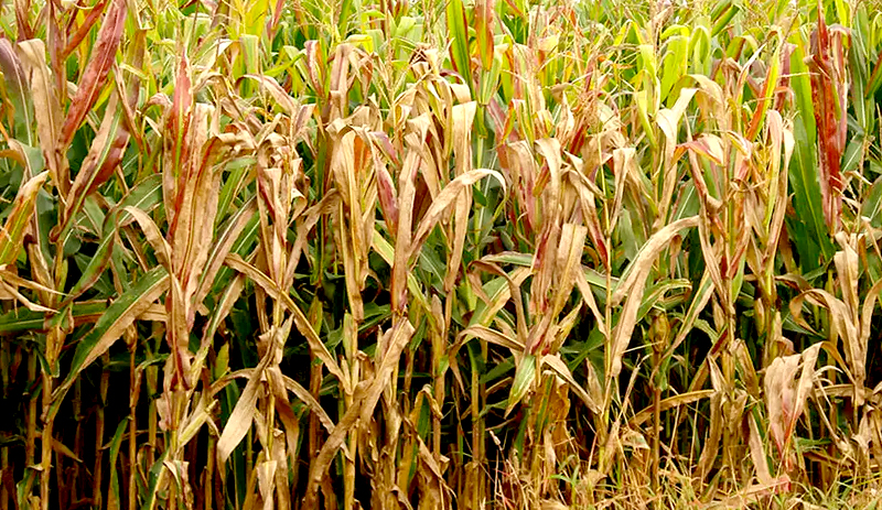 A doença se desenvolve no milho de duas formas: o pálido e o vermelho. Também altera a coloração da planta e também leva ao aparecimento de estrias, além, claro, de afetar a produção de grãos.