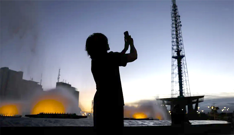 Visitantes apreciam o pôr do sol na área central de Brasília, que completa 66 anos em 2026