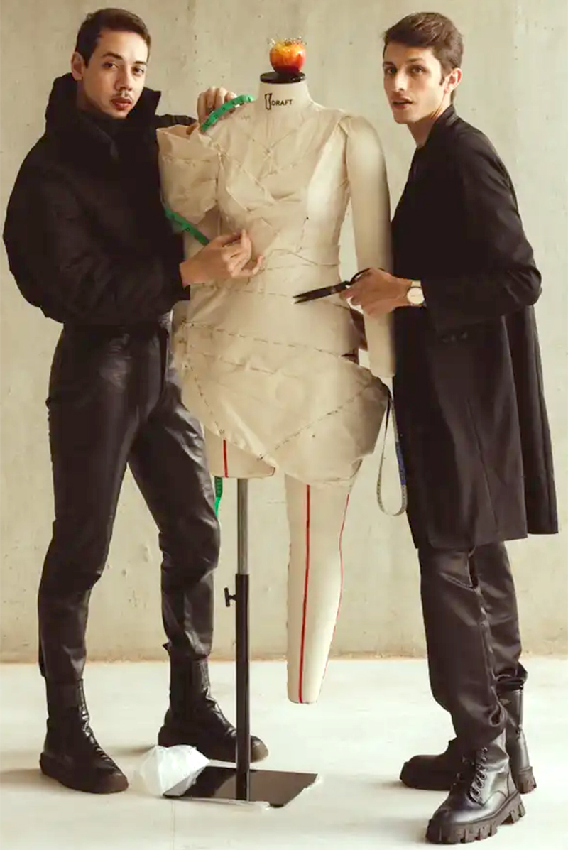 Felipe aprendeu a costurar com a avó aos 10 anos de idade. Mackenzo, que também era músico, arriscava-se em croquis ousados inspirados pelo que via da janela do ônibus. “Eu tive tias baianas que trabalharam com o próprio Juscelino Kubitschek e que fizeram parte da construção da cidade. Nós temos essa paixão pela arquitetura”.