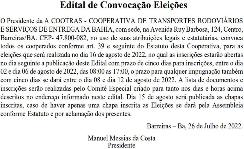 COOTRAS - EDITAL DE CONVOCAÇÃO ELEIÇÕES